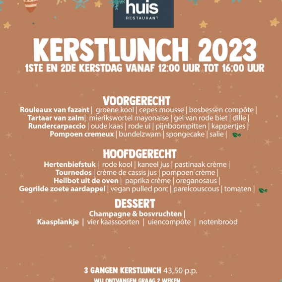 Een 4 gangen brunch (per gang uitgeserveerd aan tafel) voor €28,50 p.p.